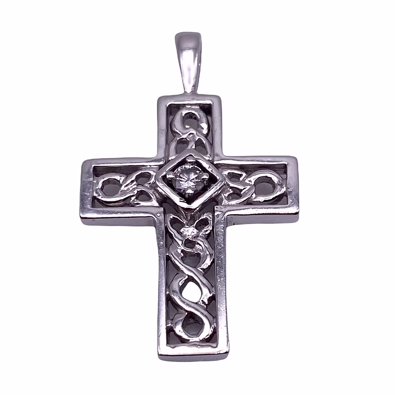 14K White Gold Drop Pendant with Amethyst and 1 Diamond – B4493