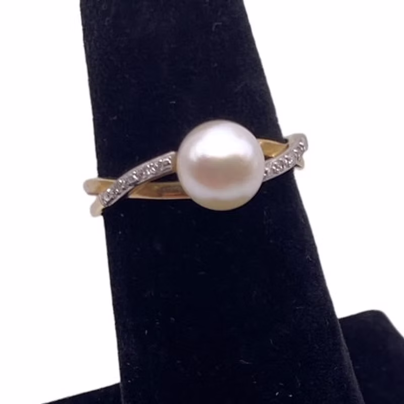 10K Fresh Pearl Ring with Diamonds - Size 7
