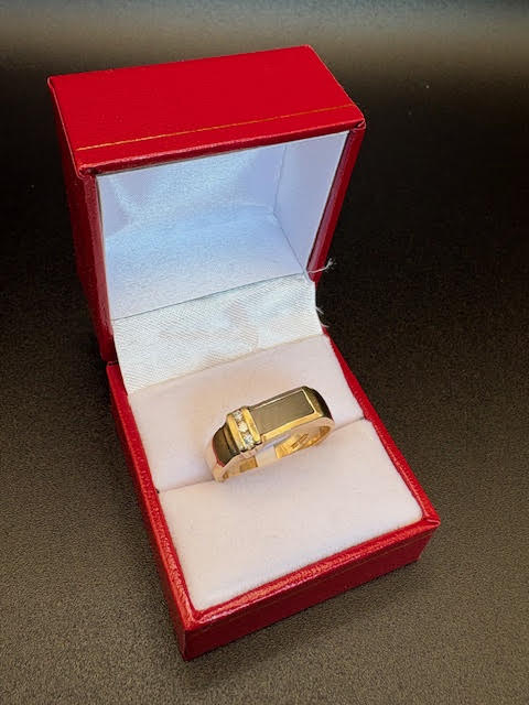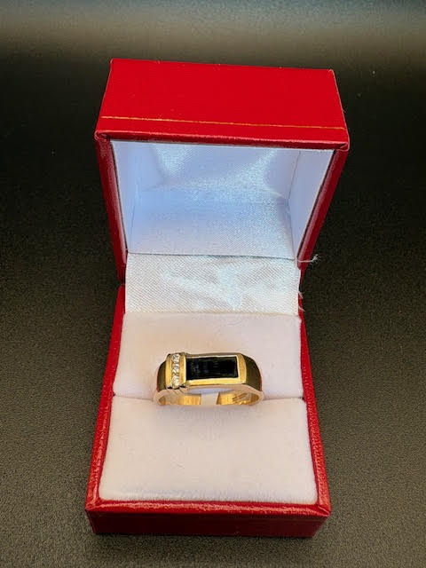 10K Yellow Gold Diamond and Black Onyx Ring – Size 10