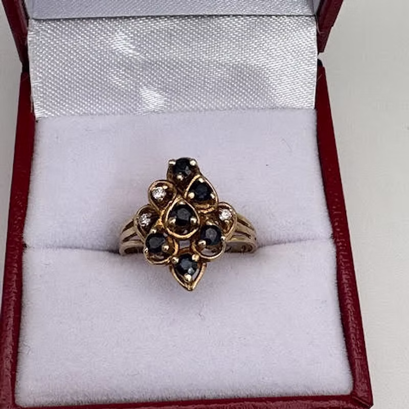 14K Gold Diamond & Sapphire Ring – Size 6 1/4.
