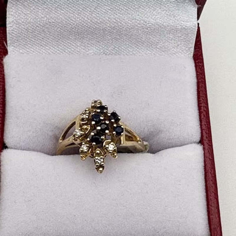 14K Gold Diamond & Sapphire Ring – Size 7.