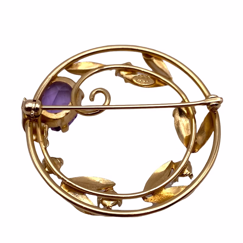 14K Gold Floral Pin with Amethyst Stone and Cultured Pearls - B5209