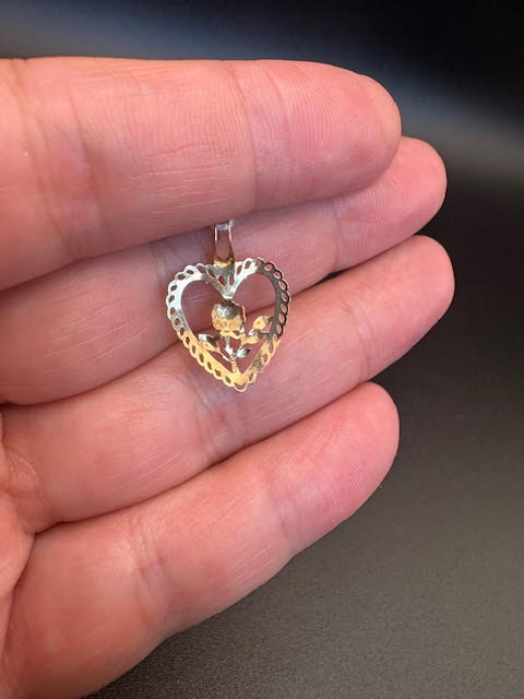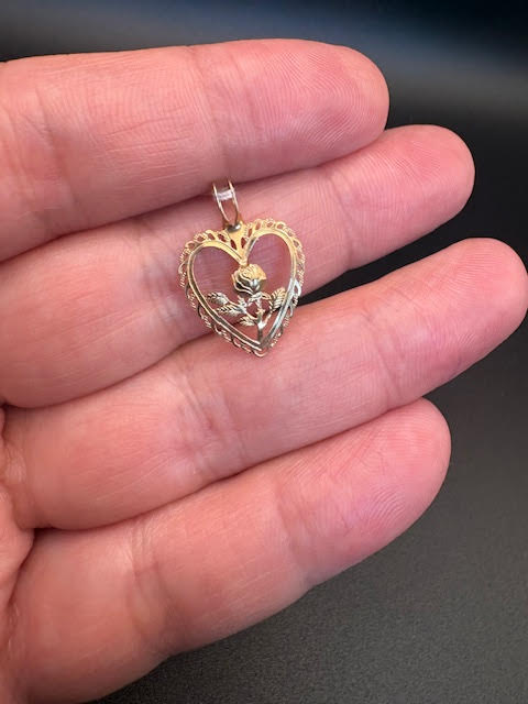 14K Yellow Gold Heart & Flower Pendant