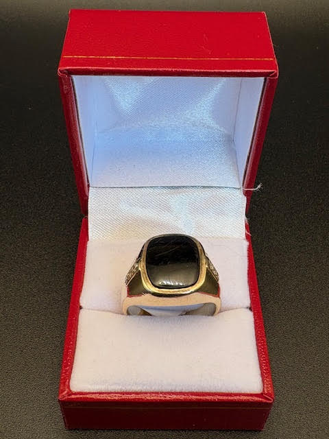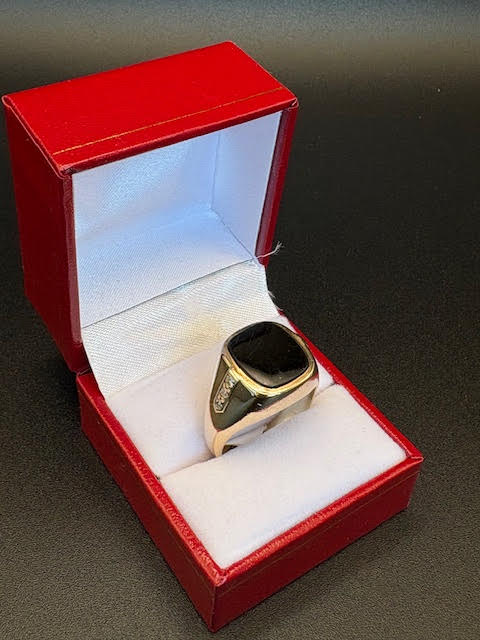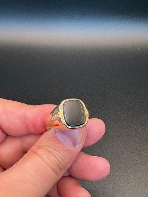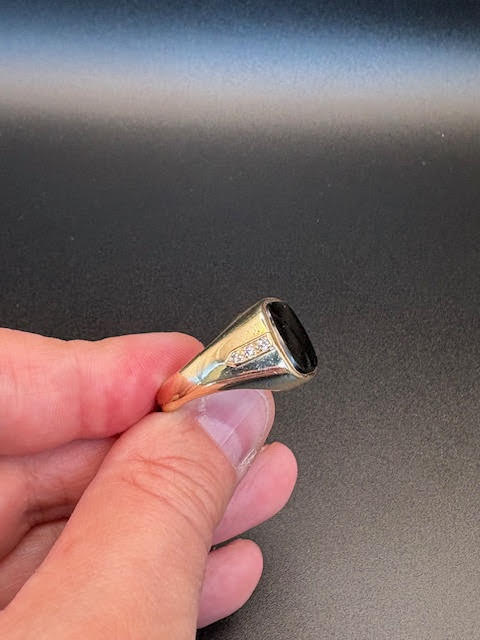 14K Yellow Gold Ring with Diamonds & Black Onyx – Size 11