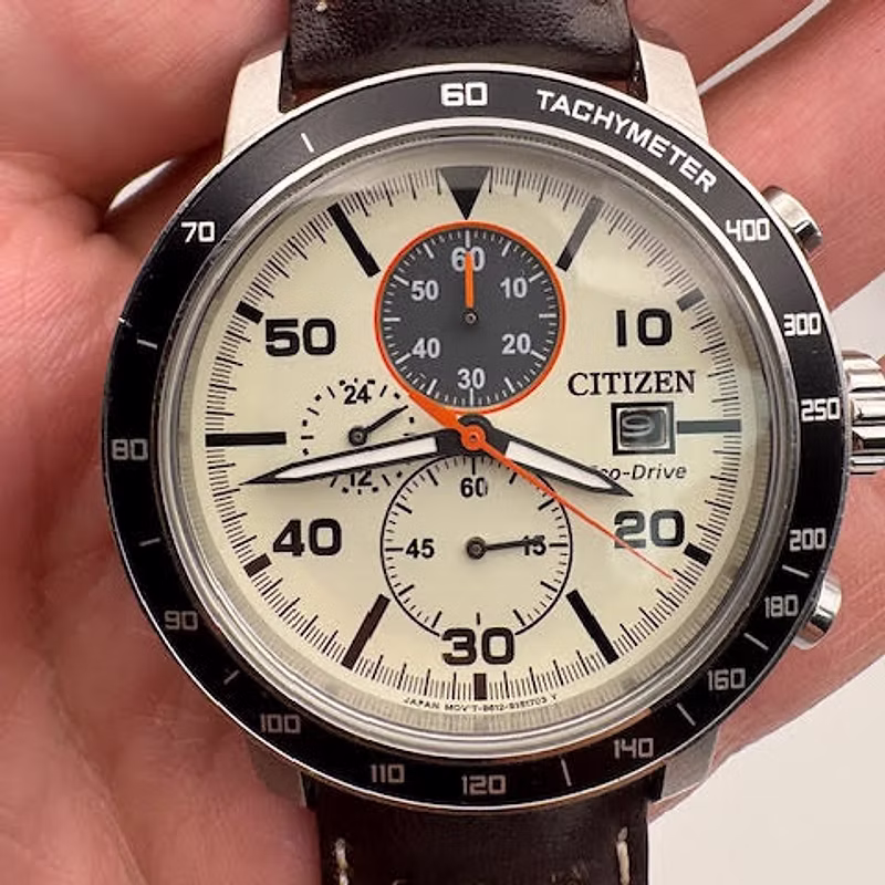 Citizen Eco-Drive Stainless Steel Watch with Leather Band.